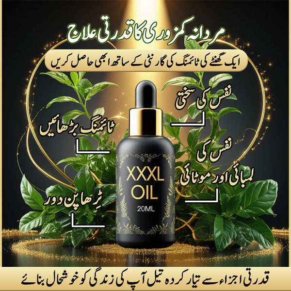 "XXXL-OIL ایک قدرتی جڑی بوٹیوں پر مبنی تیل ہے جو جسمانی فٹنس اور اعتماد کو بہتر بنانے میں مددگار ہو سکتا ہے۔"